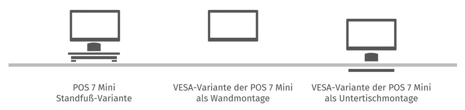 In der VESA-Variante der POS 7 Mini lässt sich die Systembox individuell je nach Anforderung unter einer Theke montieren oder an einer Wand anbringen. Dadurch bietet sich auch die Möglichkeit für eine Pole- oder Wandmontage des Bedienerdisplays und erleichtert das Kabelmanagement.